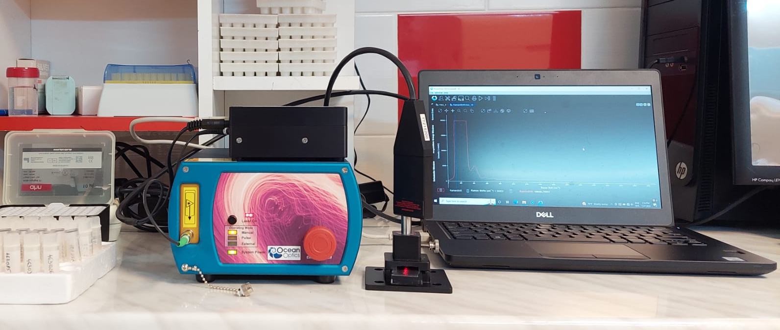 Figura 1. Demonstratorul experimental, format dintr-un spectrometru portabil și modele statistice de analiză tip Machine Learning, operat în mediu de laborator clinic.
