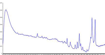 Figura 1.5.7 prezintă spectrul Raman mediu al celor 32 de probe de hemoglobină.